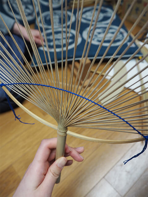 うちわは竹の特徴を生かして、職人の手でひとつひとつ丁寧につくられる。プラスチック製より柄が持ちやすく、しなるから風がやわらかい。
